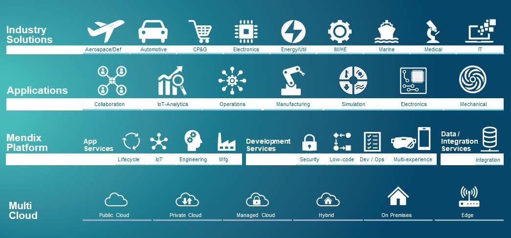 이 전략을 위해 지멘스는 지난 2018년 클라우드 기반의 로코드 애플리케이션 플랫폼인 멘딕스를 인수했습니다. 원래 멘딕스는 농부, 유통업자, 도소매업자 등의 비즈니스 고객에 초점을 두고 있었는데, 지멘스는 멘딕스를 인수한 후 PLM, MOM(제조운영관리), IoT 등과 통합해 산업 현장을 위한 앱을 개발할 수 있도록 했습니다.