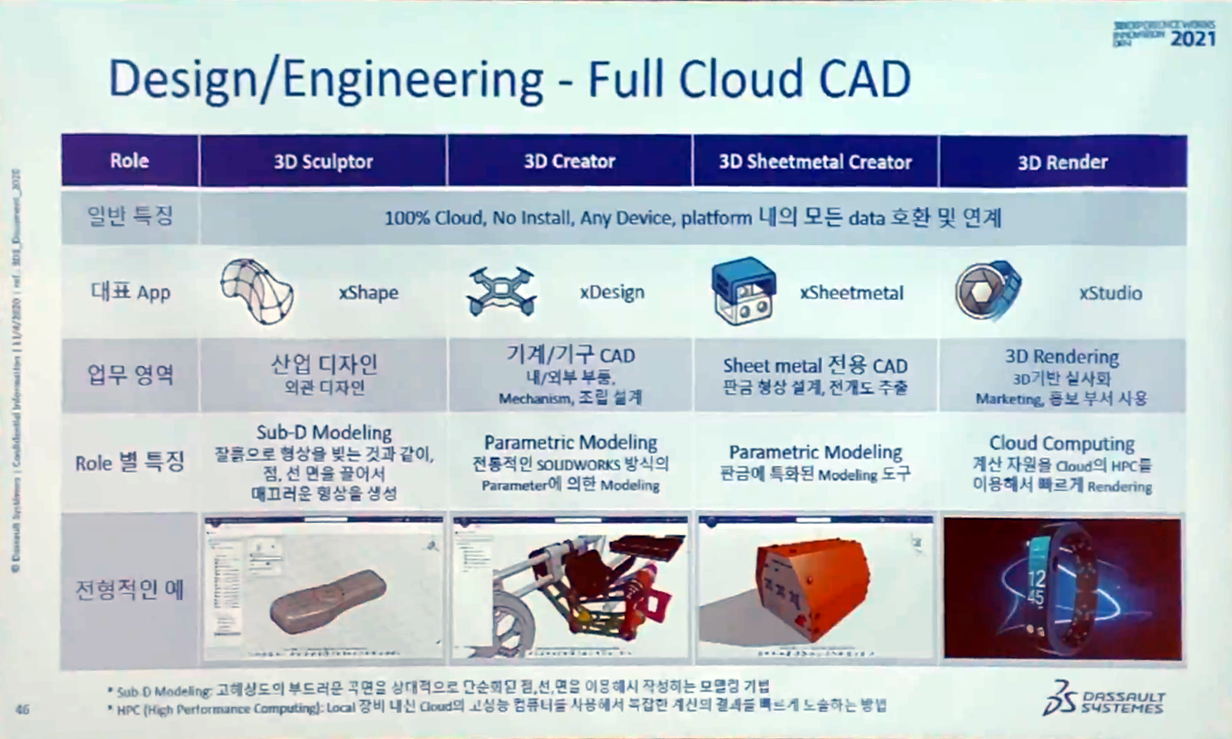 한편으로 클라우드, 인공지능, 빅데이터, 인더스트리 4.0과 같은 화두가 꾸준히 제시되어 왔지만 기대에 비해 실제 제조산업의 변화는 더딘 편이었는데요. 다쏘시스템은 최근 관심이 늘고 있는 클라우드 CAD와 관련해서 솔리드웍스 및 플랫폼 차원의 대응 전략을 소개했습니다.