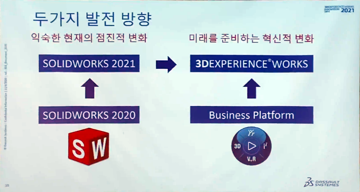 다쏘시스템은 제품에서 플랫폼으로 솔리드웍스 전략의 중심축을 옮기고 있는 모양새입니다. 2020년 초에는 ‘3D익스피리언스 월드’ 행사에서 솔리드웍스를 포함하는 플랫폼 브랜드인 ‘3D익스피리언스웍스(3DEXPERIENCE WORKS)’와 비전을 선보이기도 했는데요, 이번에 3D익스피리언스웍스 포트폴리오에 대해 조금 더 자세히 설명했습니다.