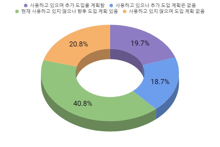 개별 항목 중에서는 ‘현재 사용하고 있지 않지만 향후 도입 계획이 있다’는 응답이 가장 많아서, 3D 프린터의 활용이 앞으로 늘어날 수 있을지 기대가 됩니다.