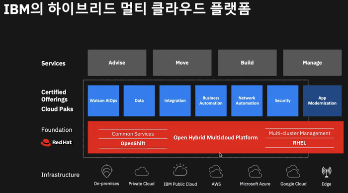 IBM이 제시하는 하이브리드 멀티 클라우드란, 비즈니스 목표에 맞춘 클라우드 전략에 기반해 다양한 형태의 클라우드를 관리할 수 있는 개방형의 플랫폼을 만들고 운영하는 것을 가리킨다. 이를 위해 IBM은 클라우드 전략 수립부터 클라우드 인프라의 설계, 기존 인프라의 클라우드 전환, 이후 클라우드 운영과 관리까지 개방성과 안전을 갖춘 엔드 투 엔드 솔루션과 서비스를 제공한다는 계획도 소개했다.