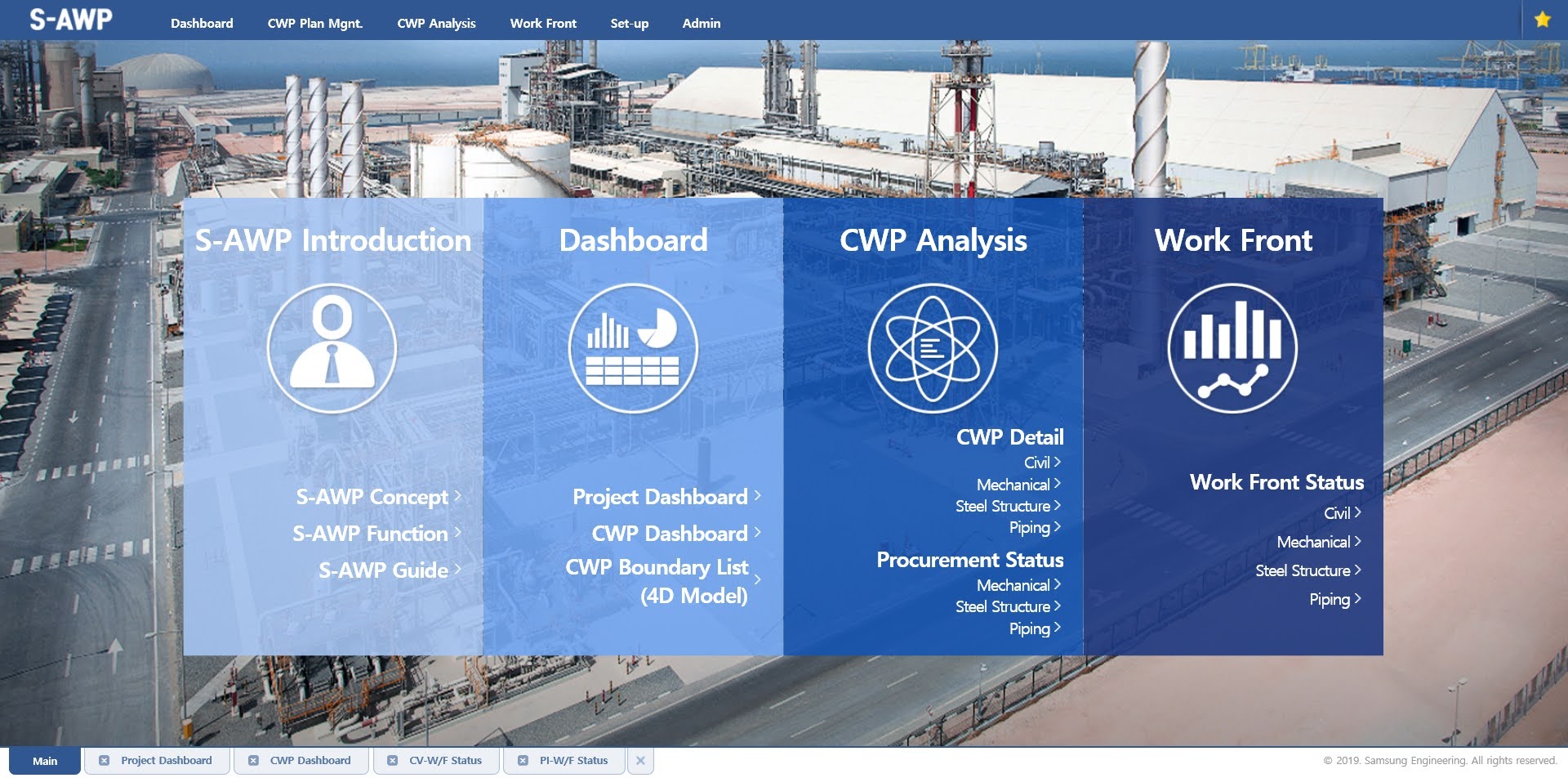 한편으로 EPC 건설 프로젝트는 해외나 오지에서 진행되는 경우도 많은데요. 삼성엔지니어링은 S-AWP 시스템이 지리적인 환경에서 생기는 프로젝트의 어려움을 해소하는 데에도 도움이 될 것으로 기대하고 있습니다.
