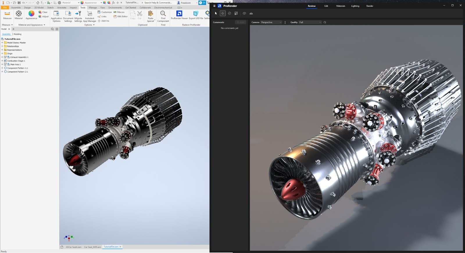 오토데스크 앱 스토어에서 다운로드할 수 있는 인벤터 전용 라데온 프로렌더 플러그인을 설치하면, 인벤터에 ‘ProRender Viewer’ 버튼이 추가된다. 이 버튼을 클릭하면 Companion ProRender Viewer가 열리고 어셈블리를 이 버튼으로 가져올 수 있다. 디자인을 가져오면 기본 색상과 재료가 그대로 적용되고, 빠르게 렌더링 결과를 얻을 수 있게 된다는 것이 AMD의 설명이다.