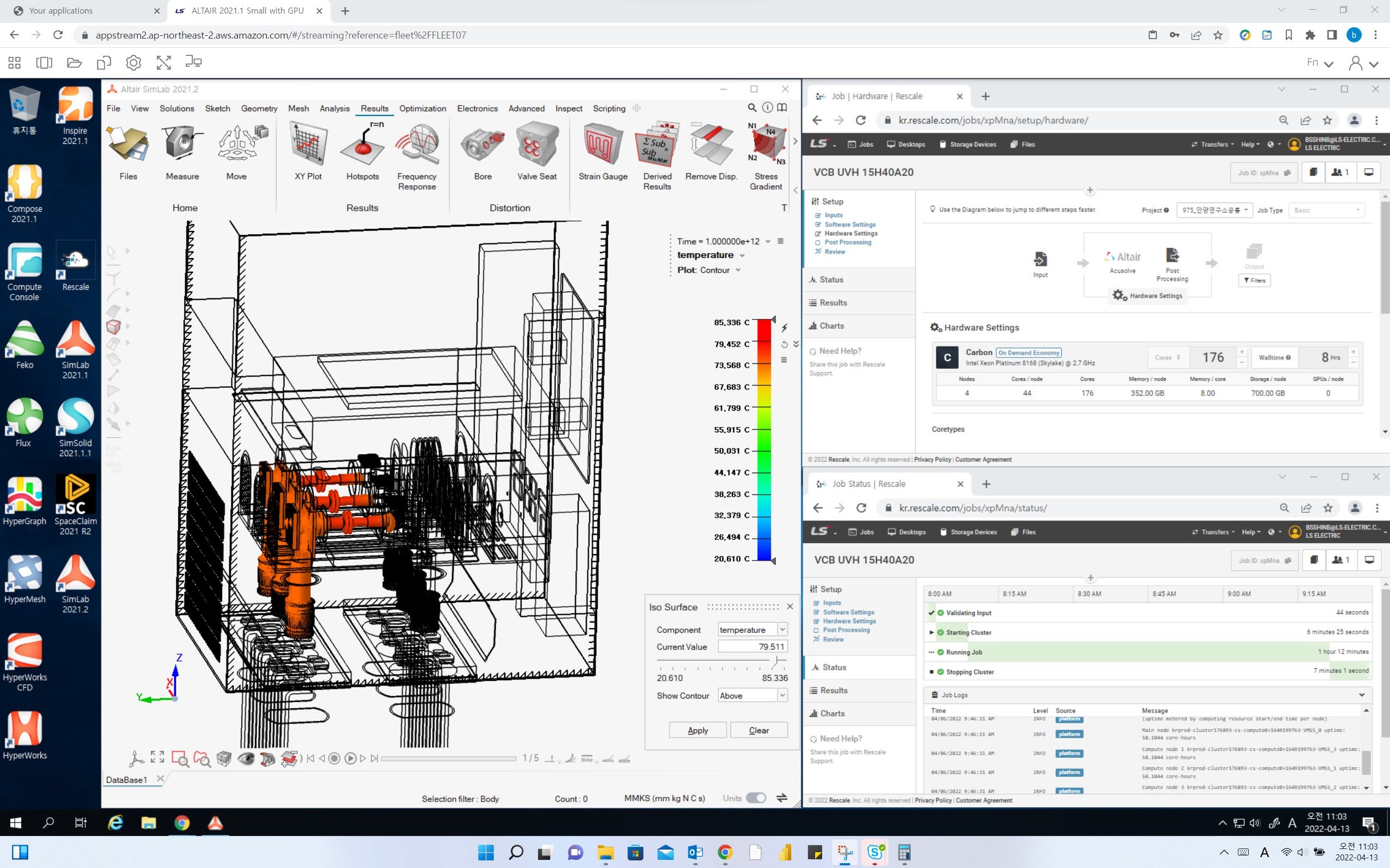 LS일렉트릭이 클라우드 CAE를 도입한 초기의 주된 목적은 전력 계통에서 실제 시험을 진행하기 전에 빠르게 설계를 검증하는 것이었는데, 현재는 멀티피직스(다중물리) 및 조립 공정 시뮬레이션, 자동화 등으로 클라우드 CAE의 활용 범위를 넓히고 있는 단계입니다. 한편, 예상치 못한 코로나19의 대유행 상황에서 설계 및 해석 업무자들이 재택근무로 무리 없이 전환하는 데에도 클라우드가 큰 역할을 했다고 합니다.