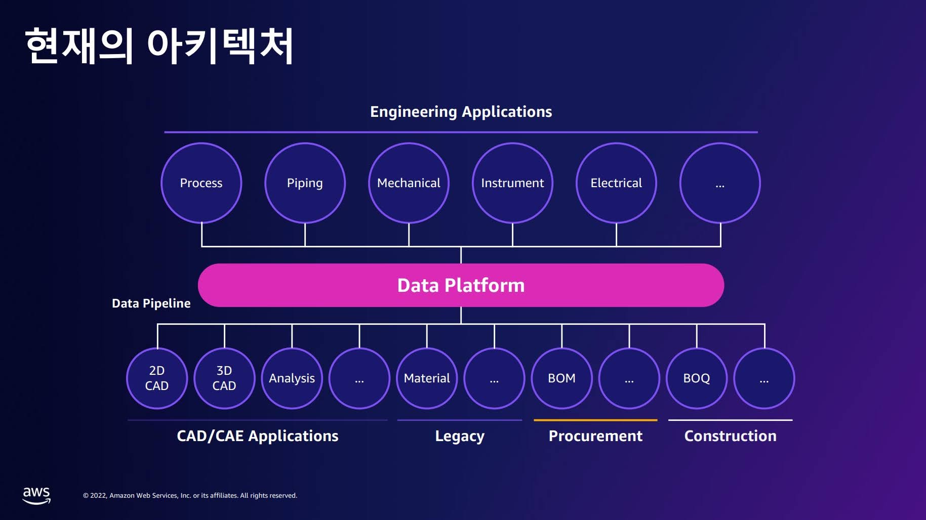 삼성엔지니어링은 석유화학 플랜트를 개발하는 과정에서 도면이나 문서에 기반한 커뮤니케이션 대신 3D 모델과 해석 모델 및 도면 사이에 정합성을 확보하는 방식의 개발 체계 전환을 진행했습니다. 데이터를 기반으로 설계 작업을 자동화 및 효율화하는 것뿐 아니라 개발 과정의 데이터를 분석해 AI 모델을 생성하고 복잡한 문제를 해결할 수 있도록 하는 것이 핵심인데, 이런 데이터 플랫폼을 만들기 위해 삼성엔지니어링은 MSA에 주목했습니다.