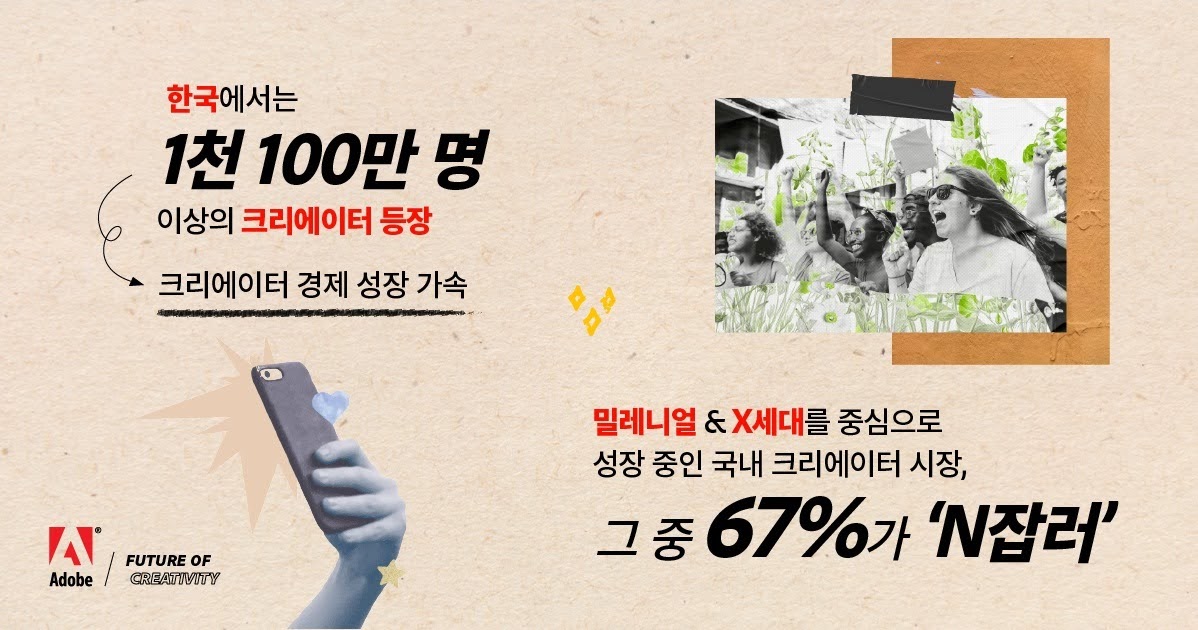 어도비가 최신 크리에이터 경제 동향을 담은 ‘크리에이티브의 미래(Future of Creativity)’ 보고서를 발표했다. 이번 보고서는 한국을 비롯한 미국, 영국, 스페인, 프랑스, 독일, 호주, 일본, 브라질 등 9개 국가의 크리에이터를 대상으로 조사한 것으로, 팬데믹 이후 크리에이티브 산업에 나타난 변화를 통해 전 세계 크리에이터 경제에 대한 포괄적인 인사이트를 제시한다.