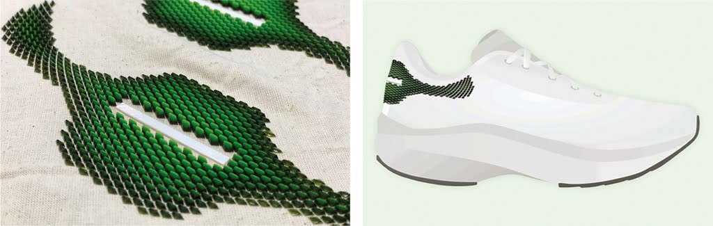 이 보고서에 따르면, 적층제조를 적용한 ‘프린트 투 텍스타일’ 생산 공정은 기존 공정과 비교했을 때 CO2e 배출량을 24.8% 줄인다. CO2e(이산화탄소환산량)는 다양한 온실가스의 배출량을 등가의 이산화탄소 양으로 환산한 것이다. 8000켤레의 신발에 1만 6000개의 로고 생산에서 적층제조는 거의 1톤의 CO2e를 절감할 수 있는 것으로 나타났다.