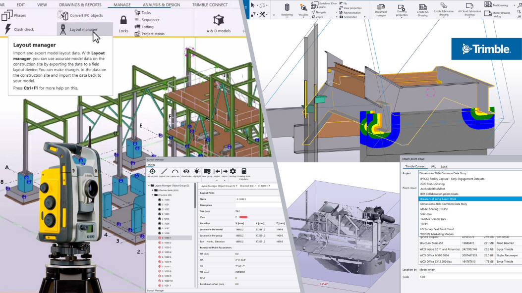 테클라 스트럭처스 2025의 레이아웃 매니저(Layout Manager) 기능 개편은 현장에서 완공 검사를 보다 명확하게 하며, 사무실에서 명확한 지침을 제공해 프로젝트 실행의 정확성과 효율성을 보장한다. 이러한 개선 사항은 모델 데이터를 현장 작업과 통합해 프로젝트 측량사와의 협업을 강화한다.