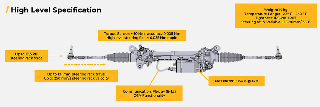 현재 폭스바겐은 프리미엄 플랫폼 전기차에 적용 가능한 첨단 모듈형 스티어링 시스템을 개발 중이다. 이러한 시스템은 스티어링 보조 기능의 갑작스러운 상실이나 예기치 못한 스티어링을 포함한 자율주행 관련 위험을 효과적으로 완화한다.