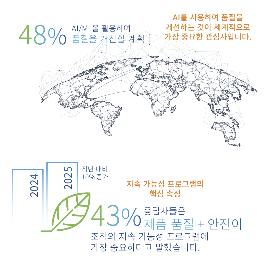 특히 인공지능(AI) 기술에 대한 관심이 두드러졌는데요. 전체 제조기업의 95%가 향후 5년 내에 AI/ML/생성형 AI에 투자했거나 투자 계획을 갖고 있다고 밝혔습니다. 생성형 AI 및 인과관계 AI에 투자하는 기업 조직은 전년 대비 12% 늘었습니다. 이런 결과는 AI 도입이 단순한 실험 단계를 넘어 비즈니스 성과를 높이기 위한 전략적 선택으로 자리 잡고 있음을 보여준다고 할 수 있겠습니다.